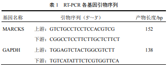 兔抗 MARCKS(20661-1-Ap,Proteintech),兔 抗 p-MARCKS(11992,CST),山羊抗兔 IgG(H+L) HRP(天德悅 S004),山羊抗小鼠 IgG(H+L)HRP (天德悅 S001),GAPDH 鼠單抗(天德悅 TDY042), 超純RNA提取試劑盒(CWbio.Co.Ltd,Cat#CW0581), HiFi-MMLV cDNA 第一鏈合成試劑盒(CWbio.Co.Ltd,Cat#CW0744)。渦旋振蕩儀(其林貝爾 QL-902), 離心機(Eppendorf Centrifuge 5415D),分光光度計 (Therno Scientific,NANODROP 2000),熒光定量 PCR 儀(Applied Biosystems,ABI7500),F(xiàn)resco 低 溫冷凍離心機( Thermo ), MultiSkan3 酶標儀 (Thermo),Mini P-4 電泳槽(Cavoy)。